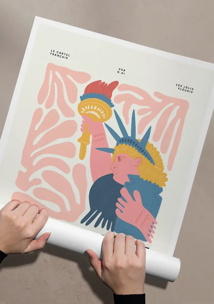 Imprimée sur du papier d’art 250g, cette affiche garantit une qualité visuelle impeccable. Les détails de la Statue de la Liberté, associés aux motifs floraux vibrants, sont sublimés grâce à une impression de haute précision réalisée en France. Vous bénéficiez d’une œuvre décorative élégante et durable.